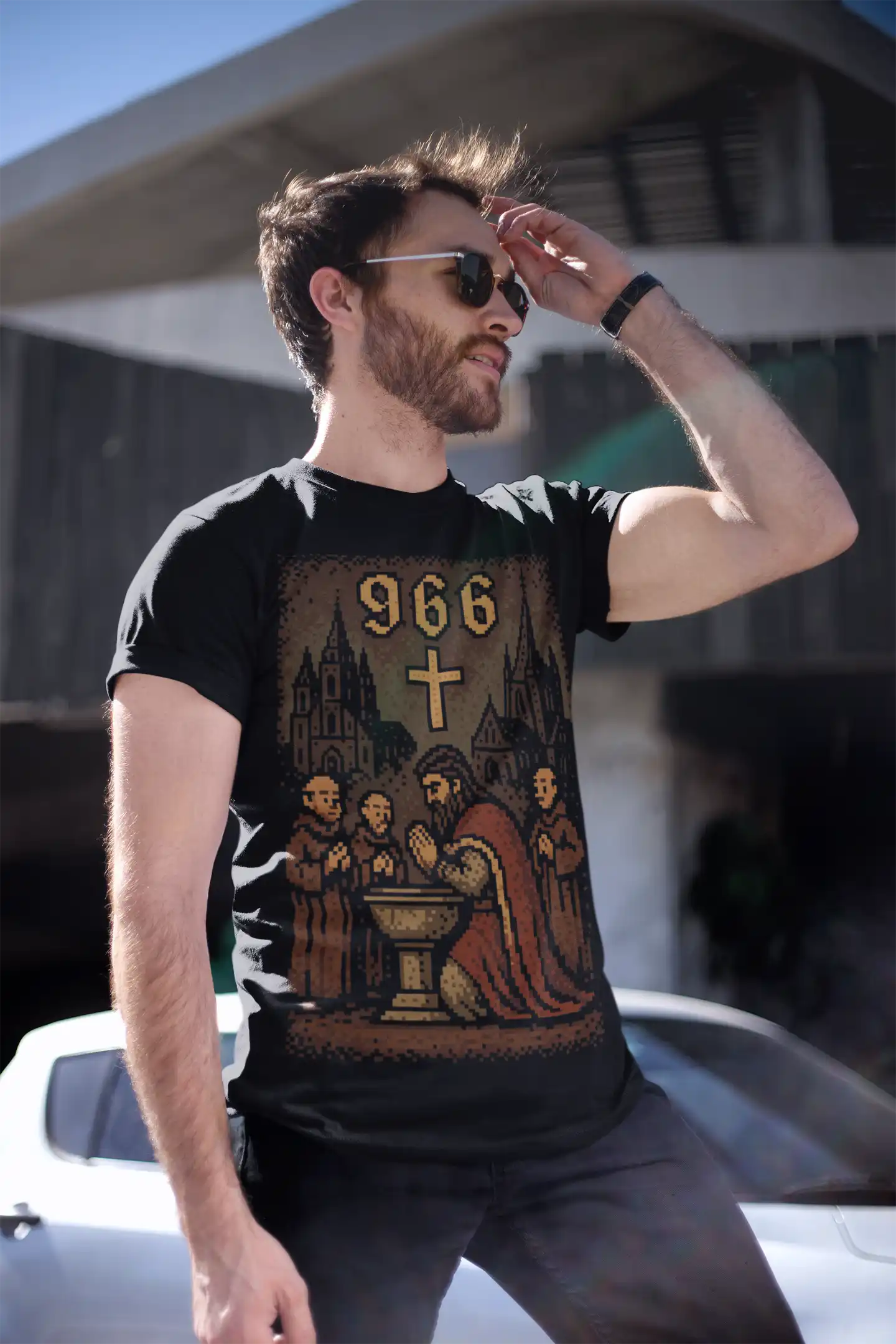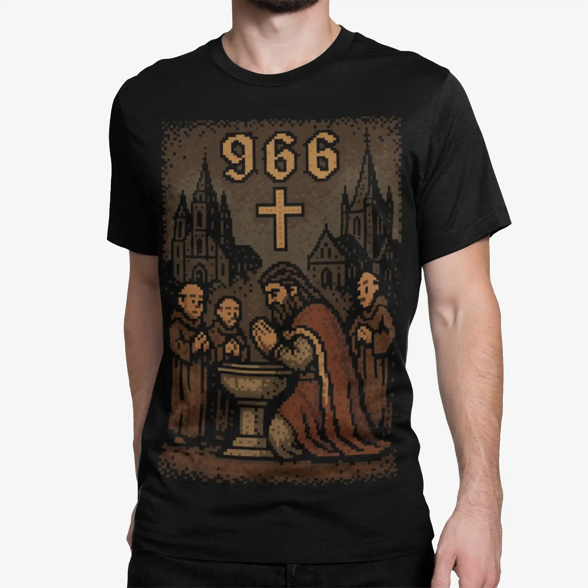966: Chrzest Polski | Pixel art | Historyczna koszulka męska