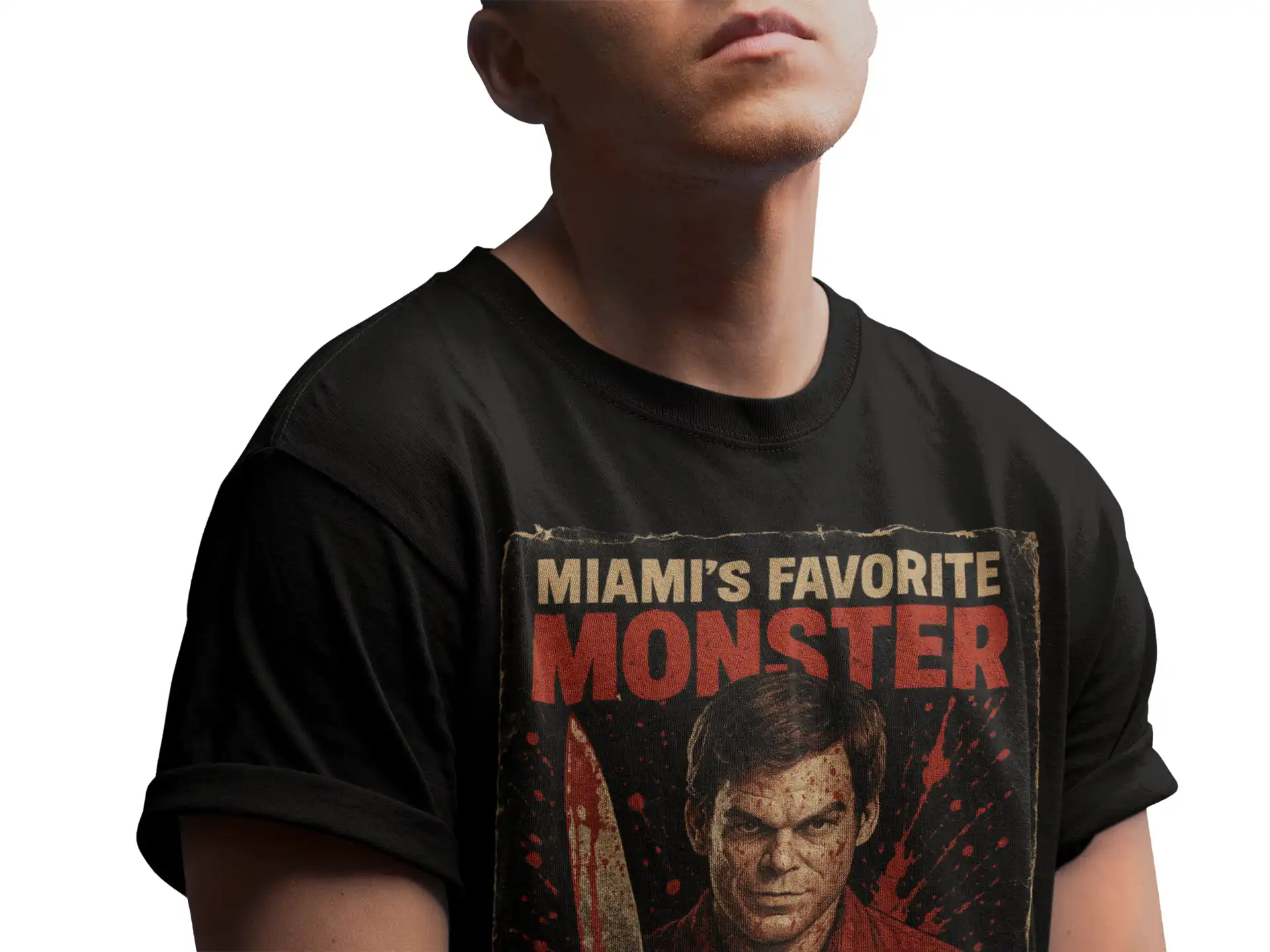 Koszulka „Miami’s Favorite Monster” od Pop.exe – krwisty hołd dla kultowego Dextera w estetyce retro horroru.