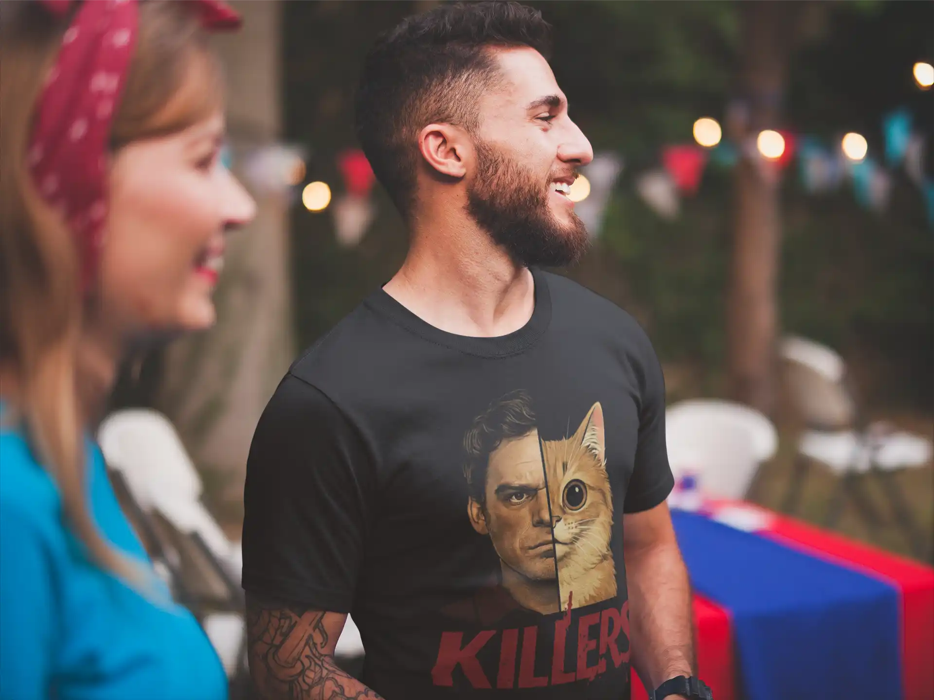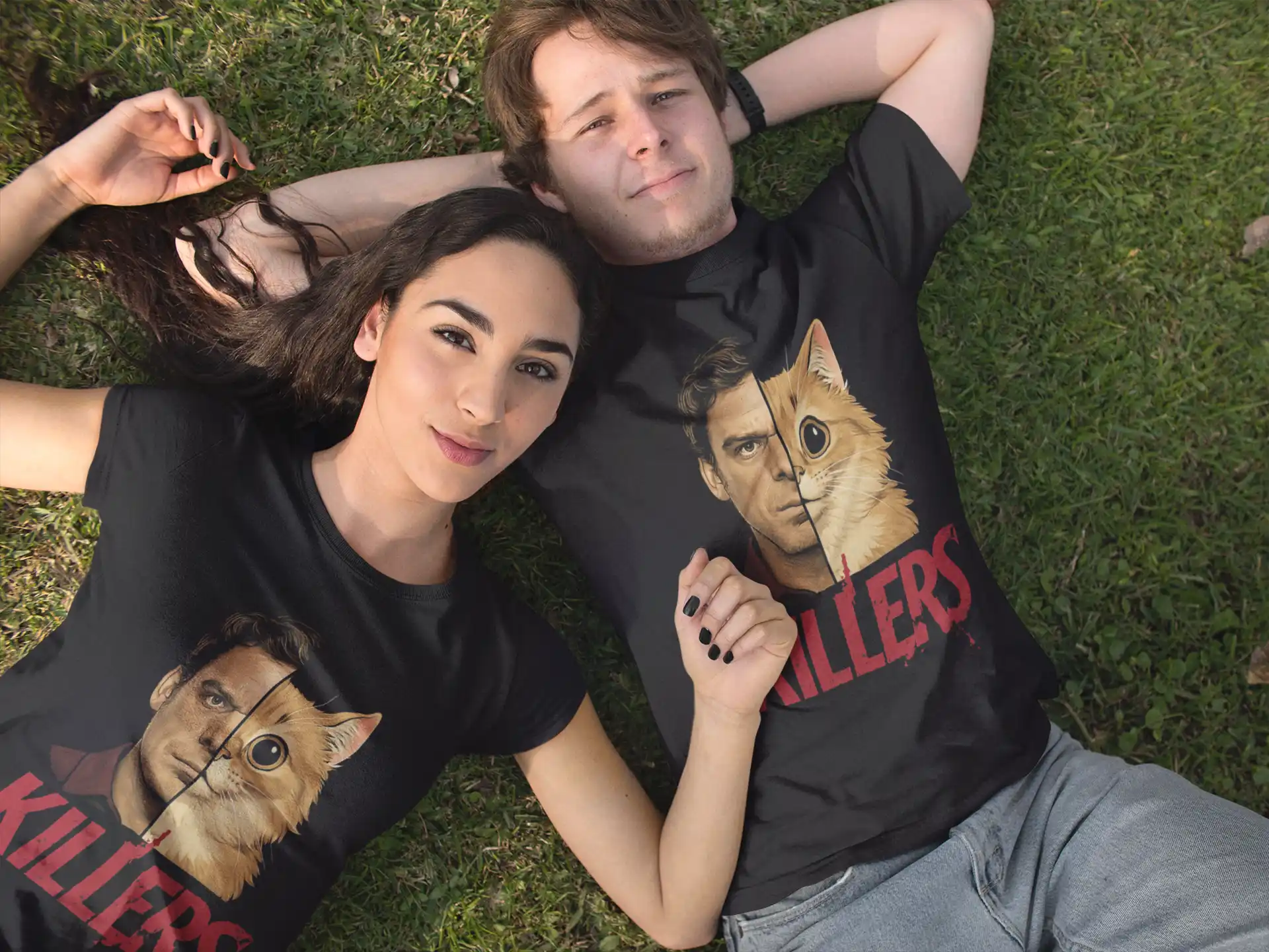 Koszulka „Killers” marki Pop.exe – mroczny humor, kultowy serial i kot o niepokojąco inteligentnym spojrzeniu.