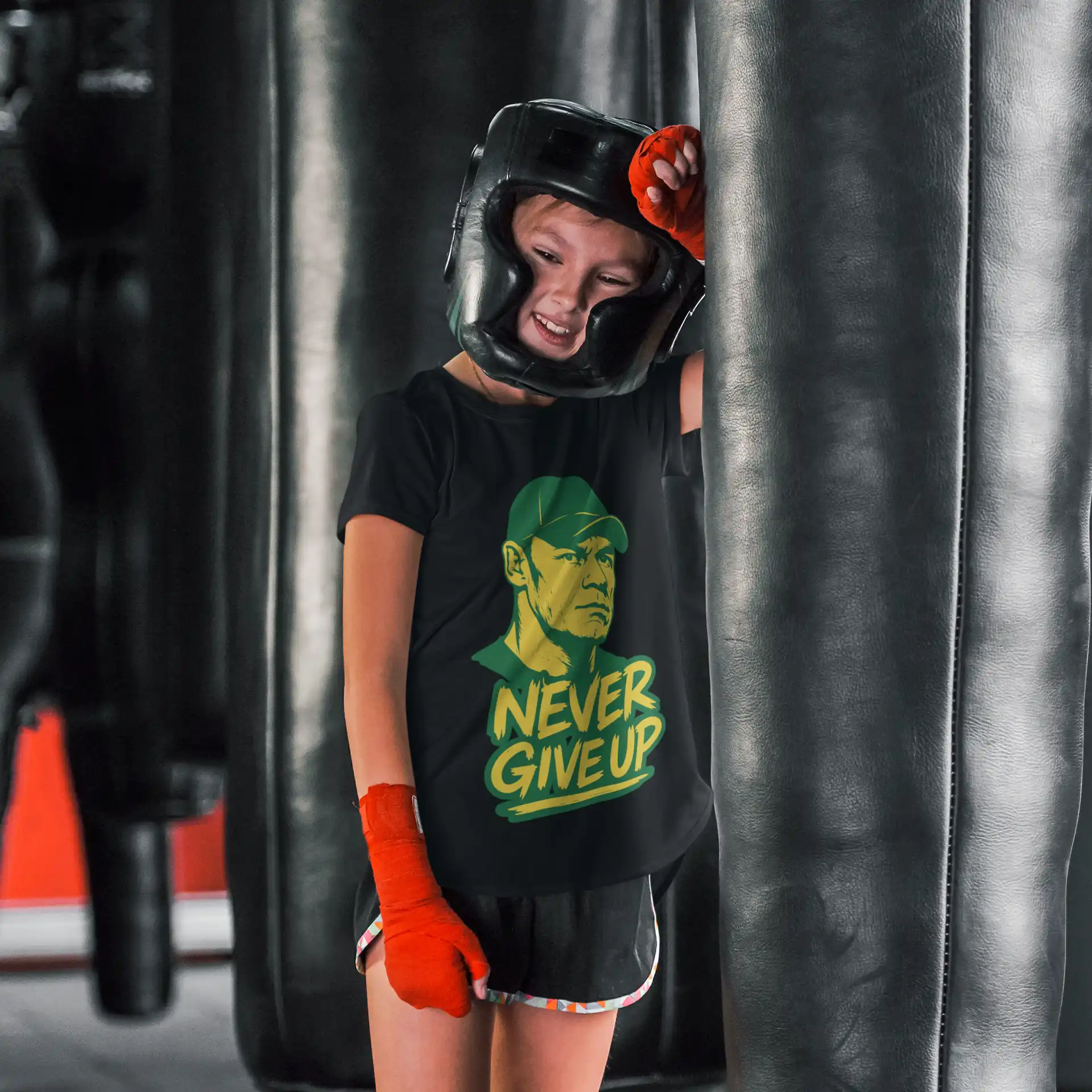 Wyrazista grafika inspirowana ikoną WWE – Johnem Ceną łączy klasyczny wrestlingowy klimat z motywacyjnym przekazem, który od lat napędza kolejne pokolenia fanów ringu.