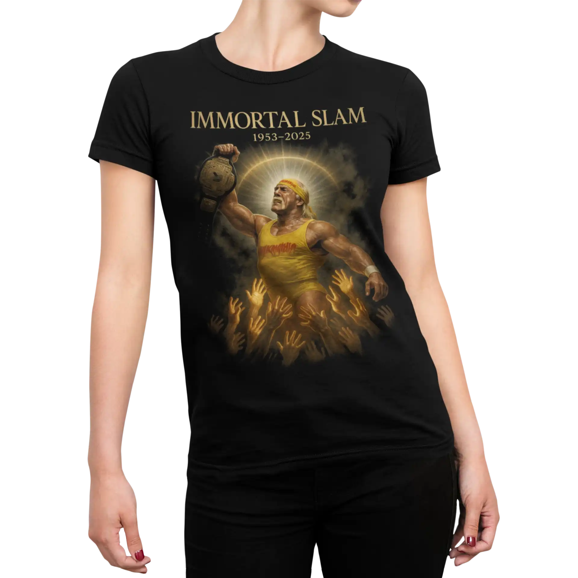 Hulk Hogan – Immortal Slam 1953–2025 | T-shirt WWE dla fanów wrestlingu | Koszulka damska