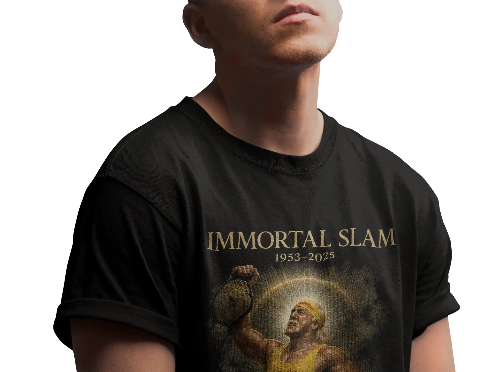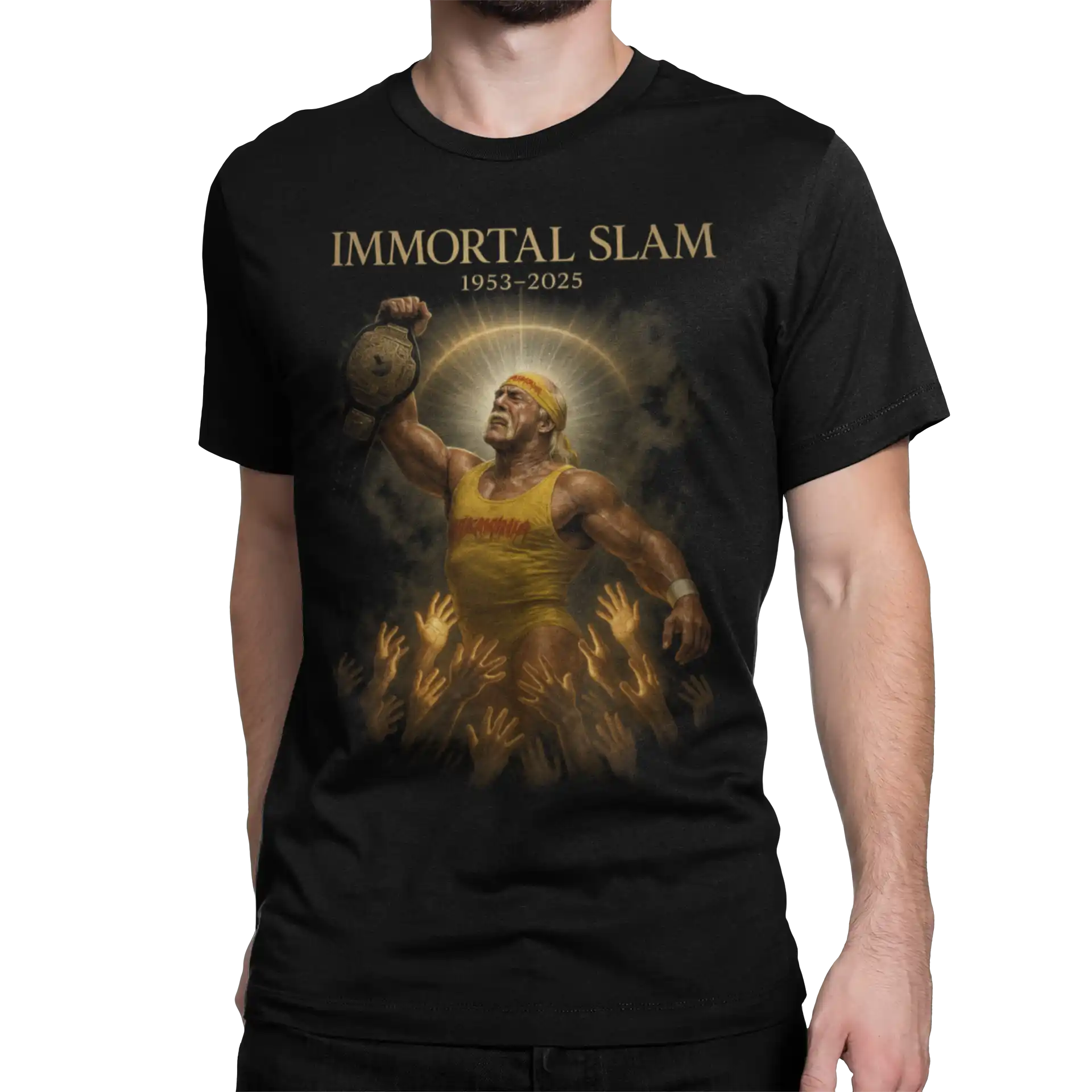 „IMMORTAL SLAM 1953–2025” to nie zwykła grafika. To wizualny manifest epoki, w której Hulkamania była religią, a hasło Hulk is Eternal nie jest metaforą — tylko faktem.