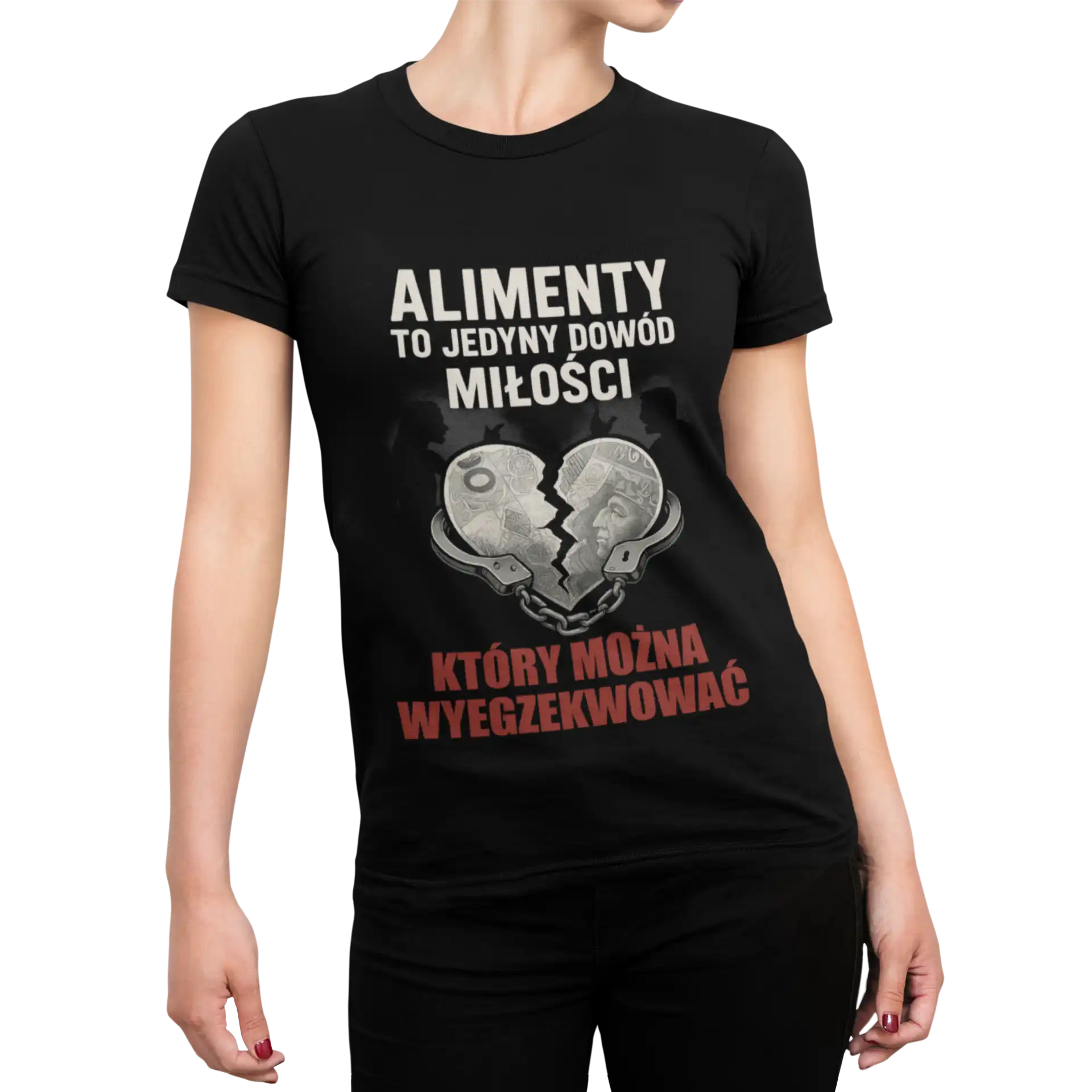Koszulka damska „Alimenty to jedyny dowód miłości który można wyegzekwować” to ironiczny i mocny komentarz do relacji, rozstań i rzeczywistości po związku.