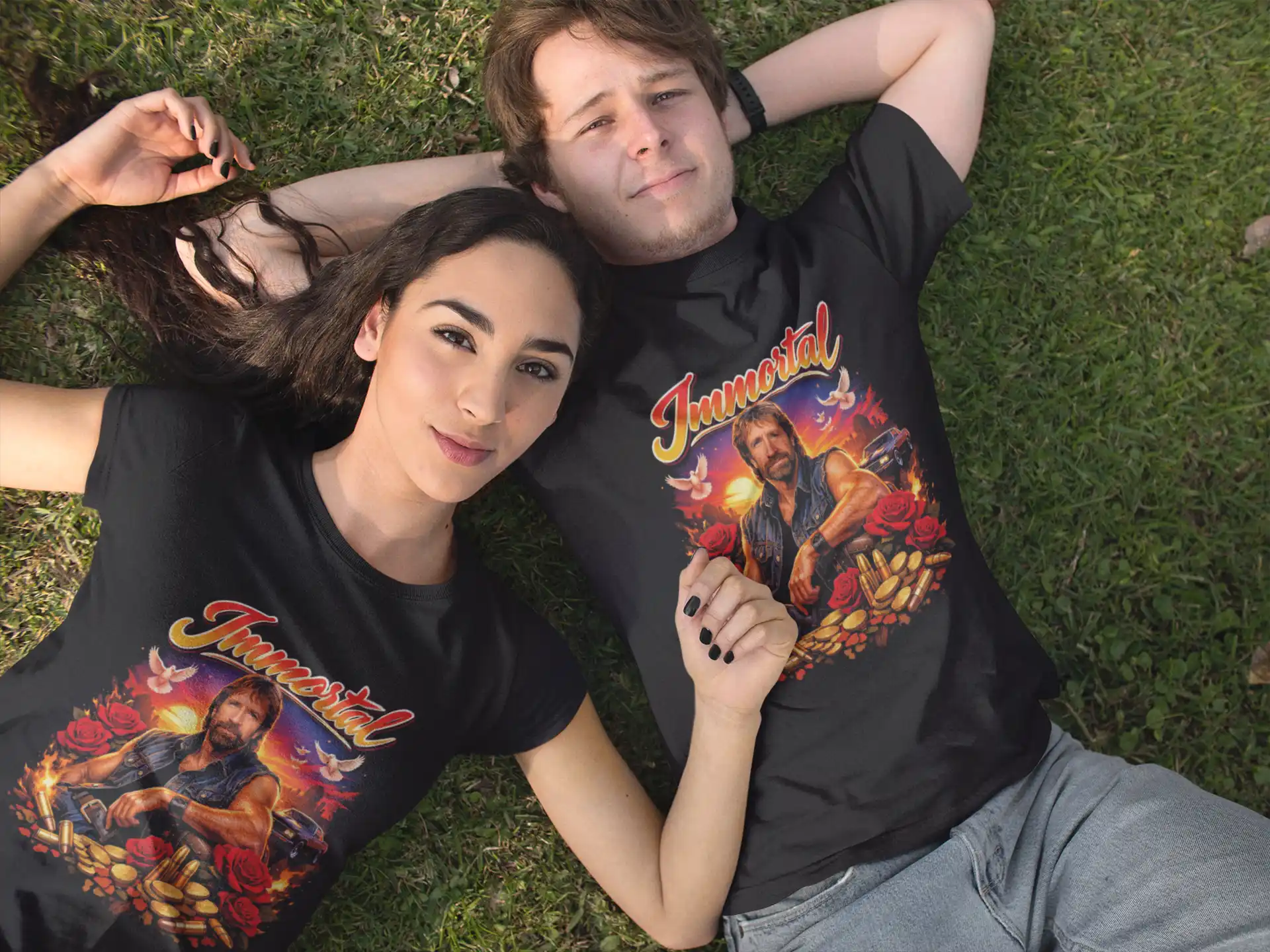 Ten model łączy motyw Chuck Norris, kultowy klimat lat 80. oraz viralowy przekaz „nie żyje” w jednym mocnym projekcie.
