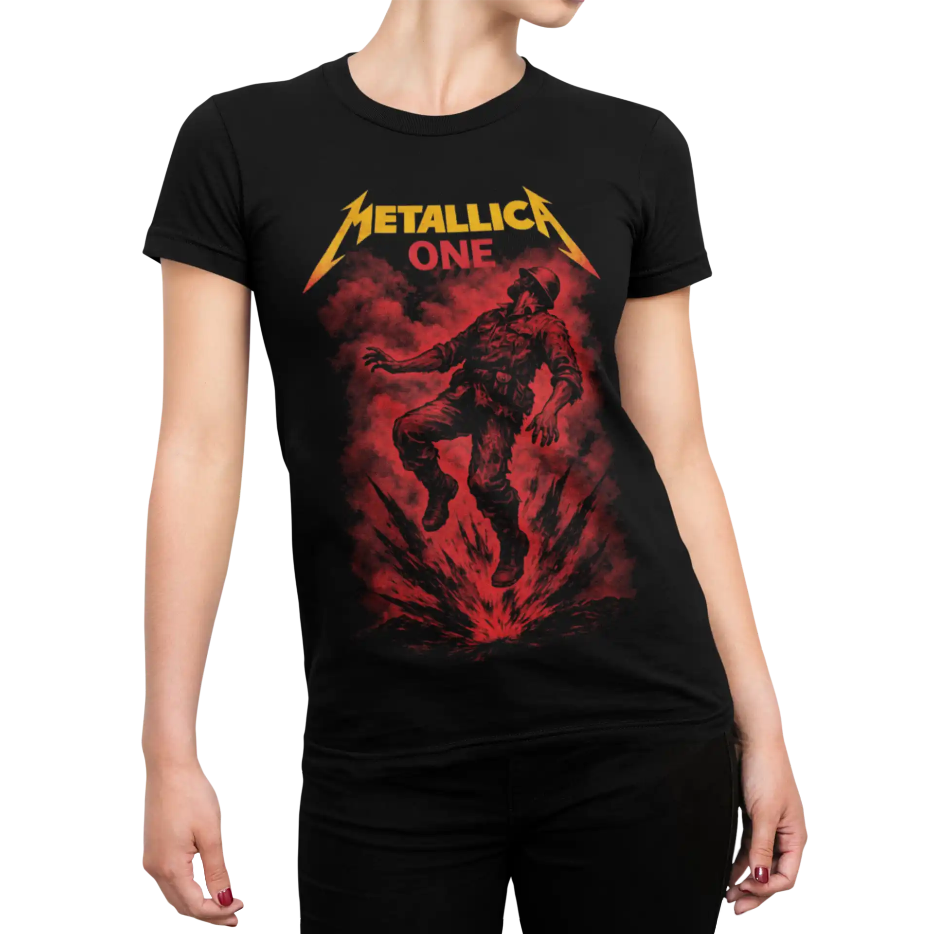 To nie jest zwykła damska koszulka z zespołem Metallica. Motyw inspirowany utworem „One” to czysta energia, ciężar emocji i klimat, który każdy fan Metalliki poczuje od razu.