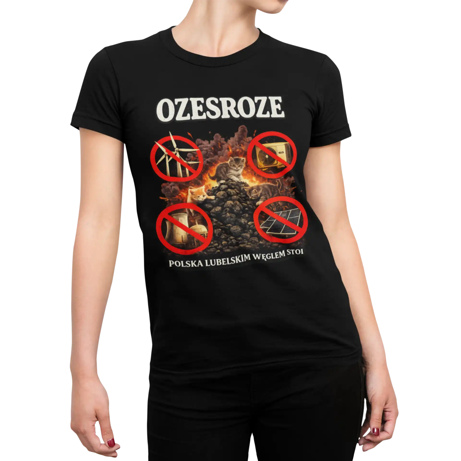 Koszulka „Ozesroze – Polska Lubelskim Węglem Stoi” to mocny i ironiczny komentarz do dyskusji o transformacji energetycznej.