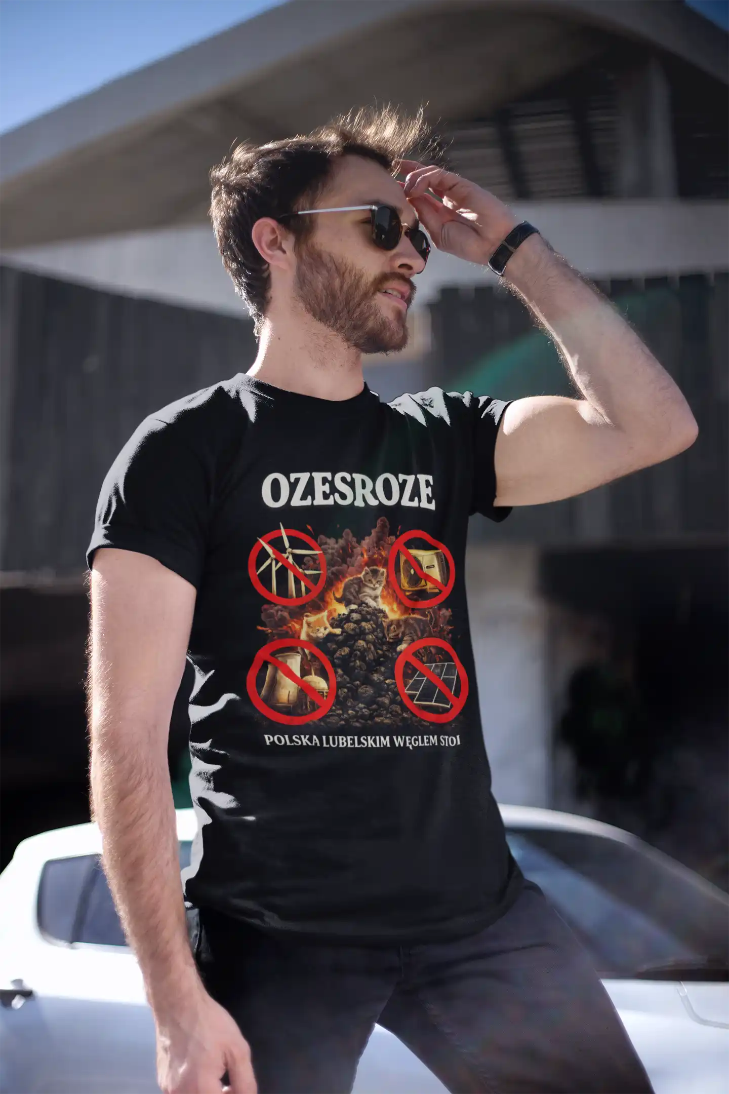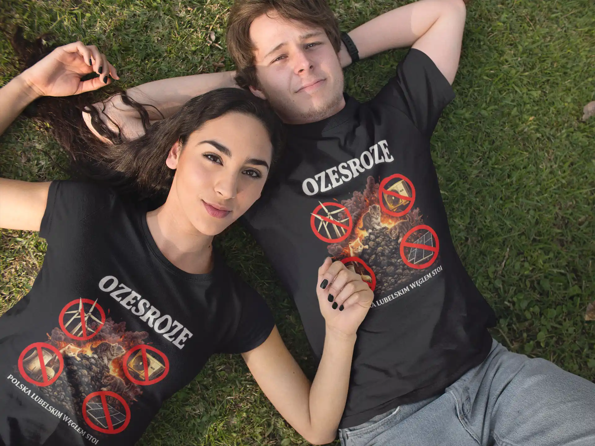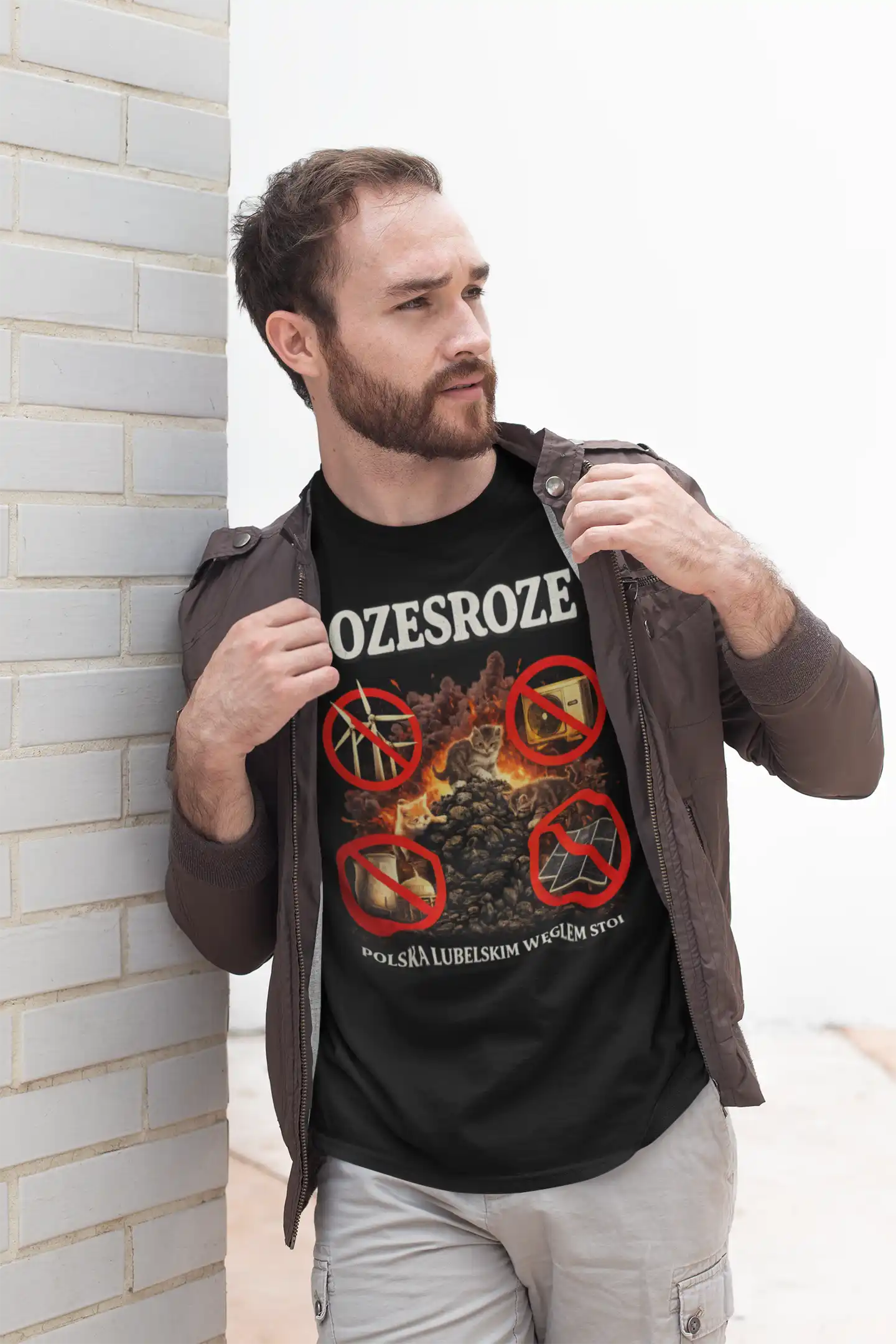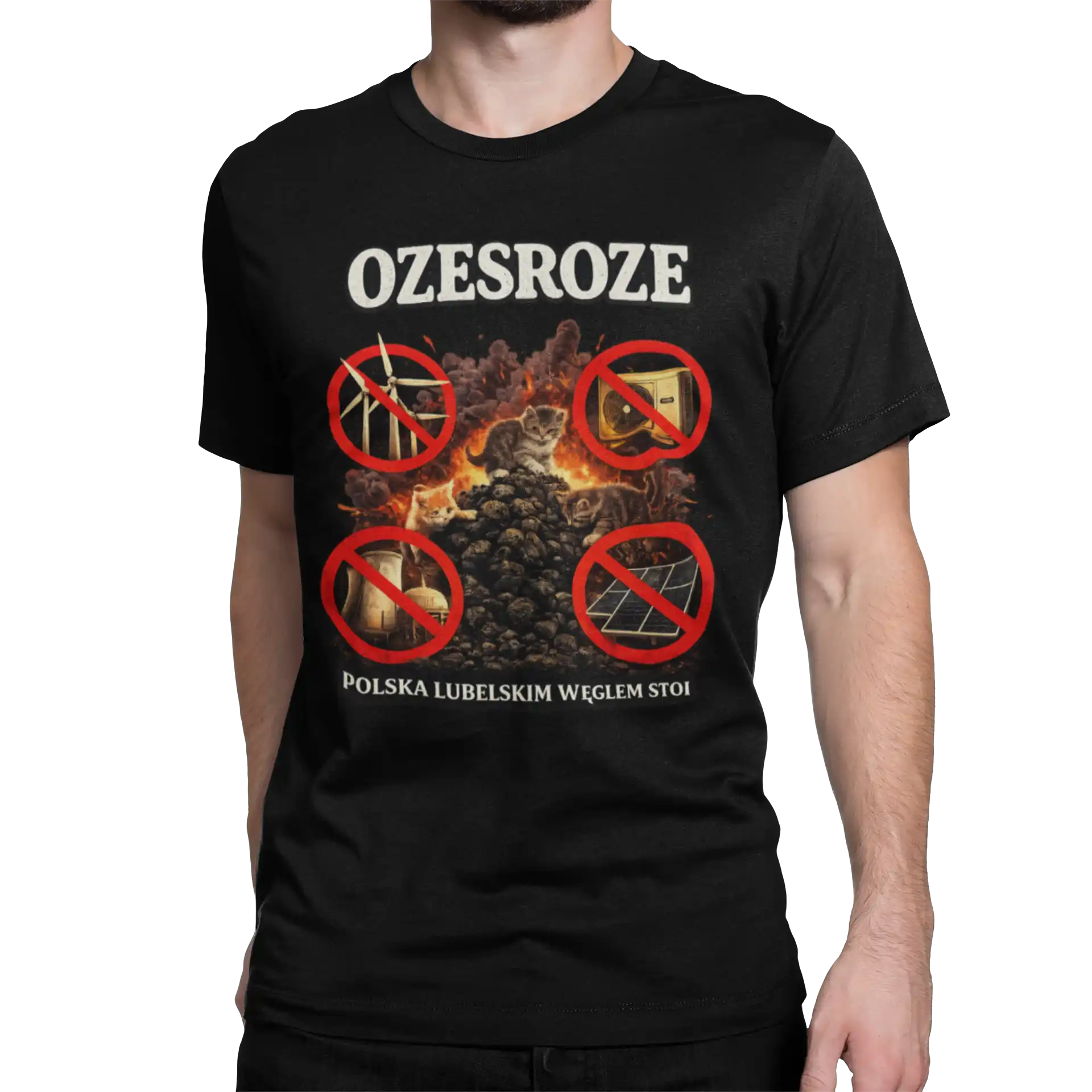 Koszulka „Ozesroze – Polska Lubelskim Węglem Stoi” to mocny i ironiczny komentarz do dyskusji o transformacji energetycznej.
