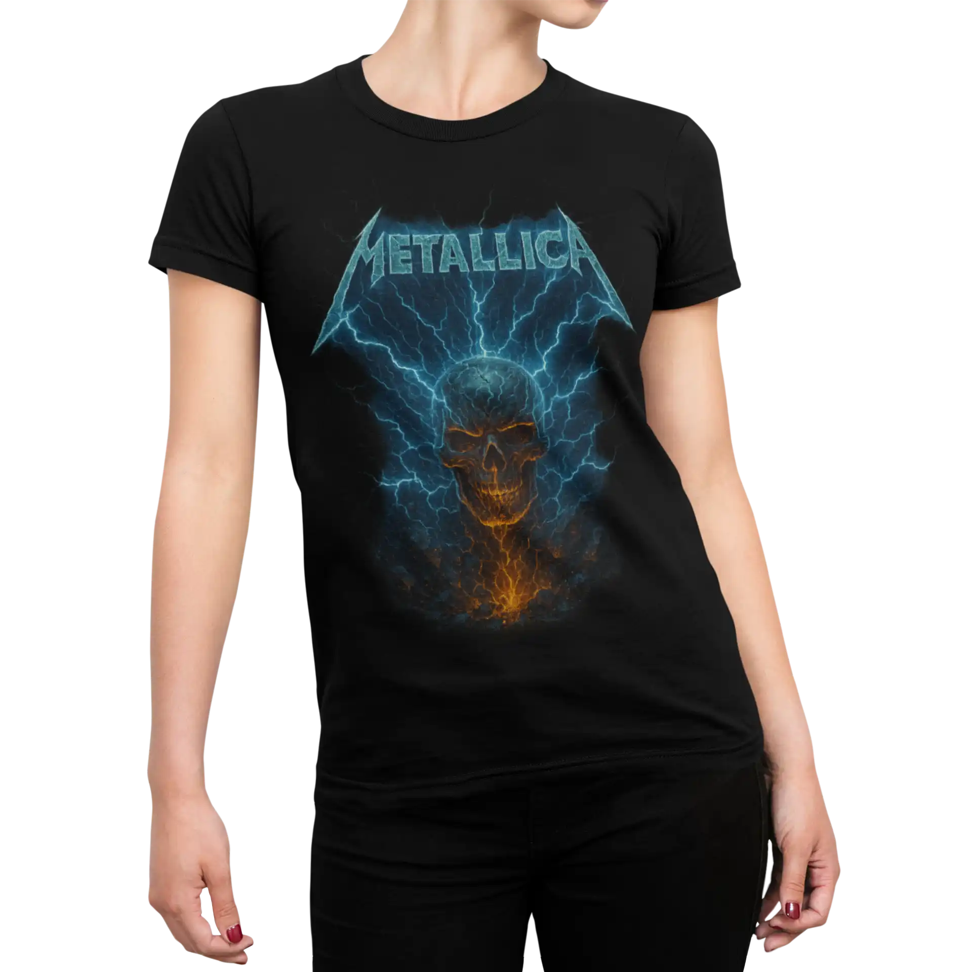 Koszulka damska Metallica z motywem czaszki i błyskawic to idealna propozycja dla fanów rocka, metalu i koncertowego klimatu. Czarna koszulka z dynamicznym nadrukiem typu skull lightning łączy estetykę heavy metal z energią sceny i mocnym streetwearowym stylem.