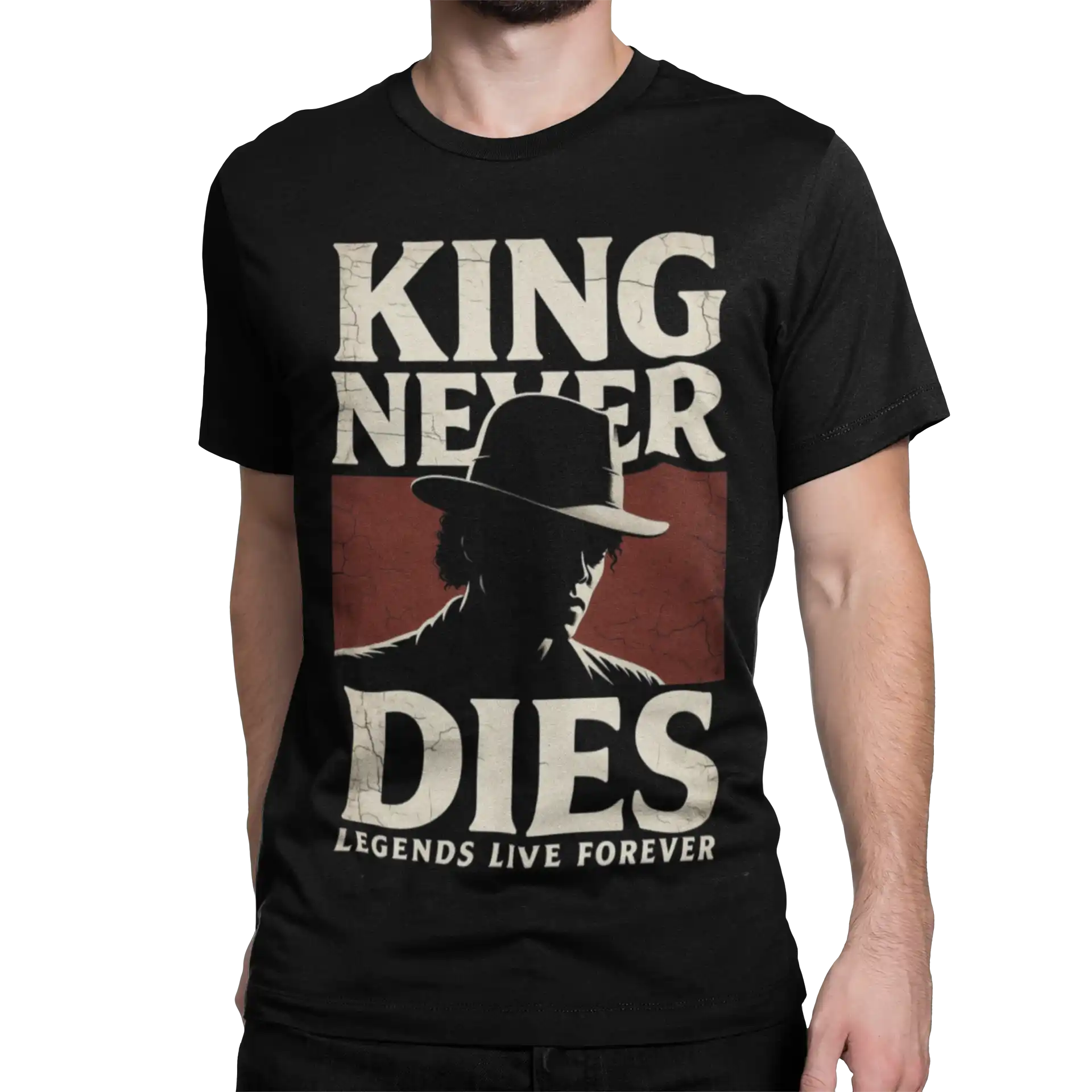 Motyw „King Never Dies – Legends Live Forever” sprawia, że to koszulka dla fanów muzyki, legend i ponadczasowego stylu.