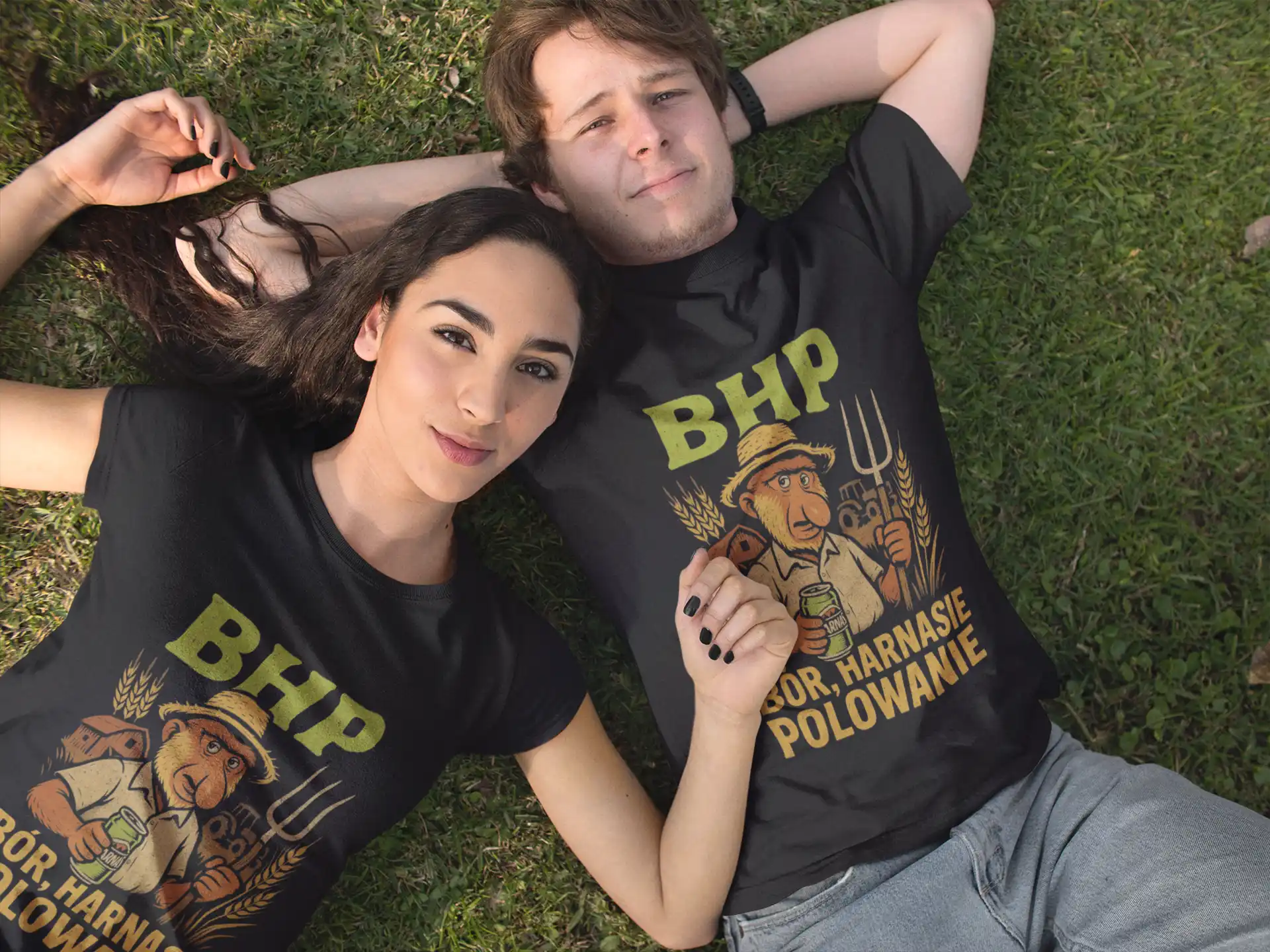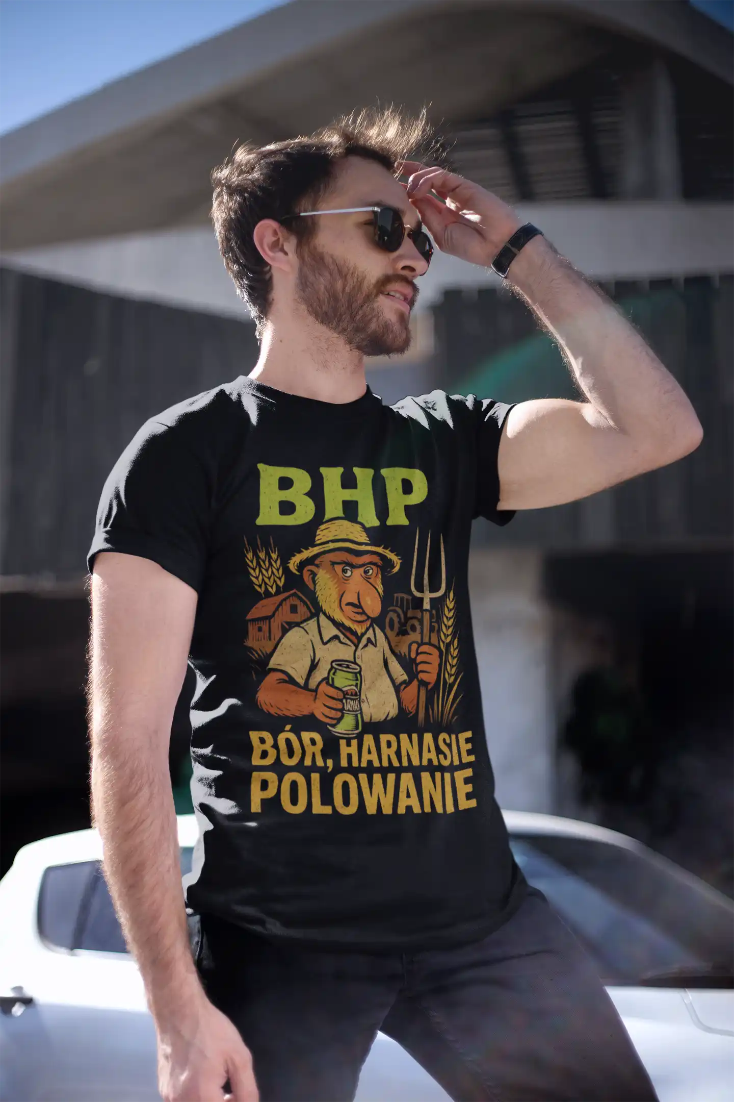 Nosacz BHP: Bór, Harnasie, Polowanie | Koszulka męska dla rolnika | T-shirt czarny