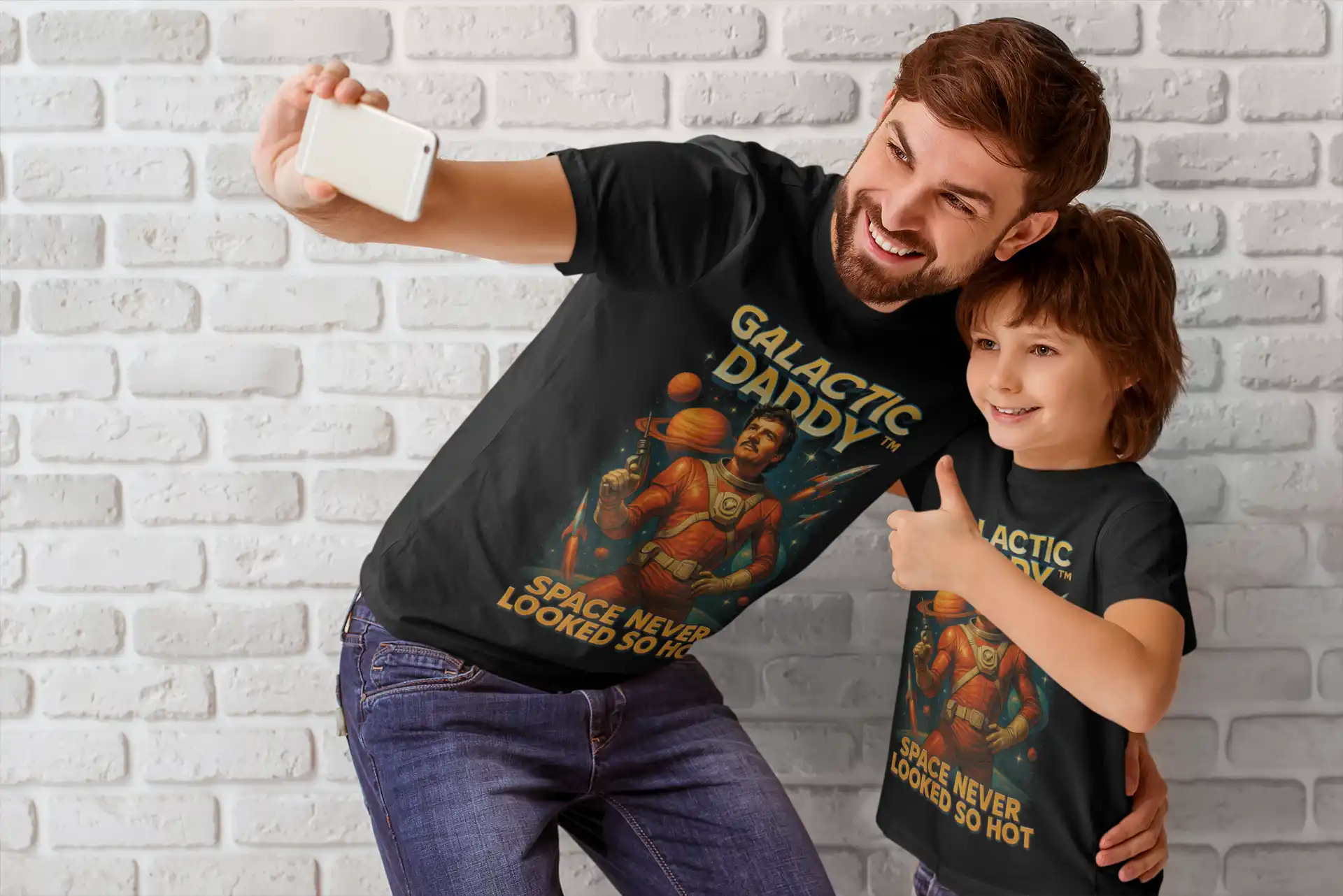 Koszulka „Galactic Daddy” to retro-sci-fi ilustracja w klimacie klasycznych plakatów kosmicznych, połączona z popkulturowym fenomenem – Pedro Pascalem, który Internet pokochał bezwarunkowo. Odważna, zabawna i absolutnie viralowa — dokładnie taka, która przyciąga spojrzenia i komentarze.