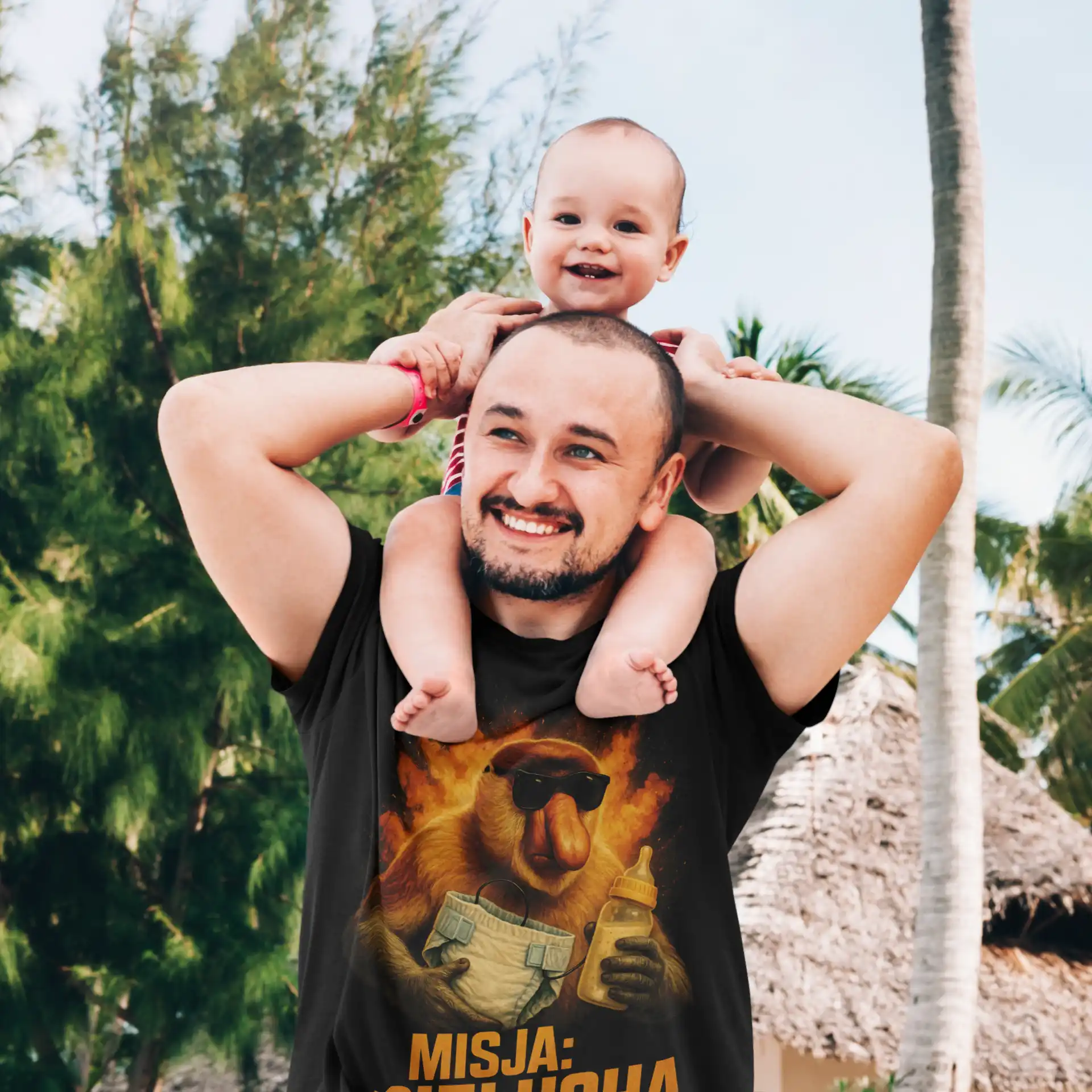 Prezent dla ojca – Nosacz z pieluchą | Śmieszna koszulka męska | T-shirt czarny