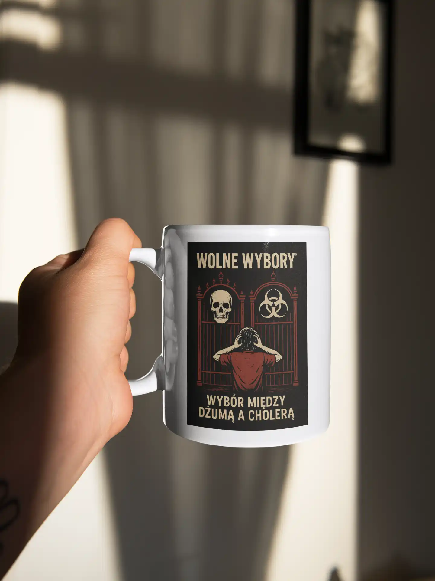 ✔ wyrazista grafika o charakterze politycznej satyry